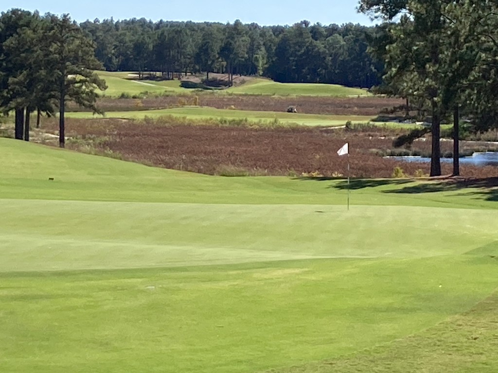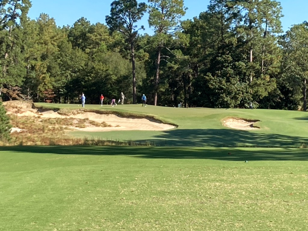 Pinehurst #4 – I expected to really like this course given the reviews but it was my least favorite of the four I played. It was very pretty, hillier than Pinehurst #2 (but nothing like the elevation changes at my local course in the foothills of South Carolina). We did not walk the course because it was noon and a bit warmer; but in the crisp fall mornings, I think it would be an easy walk.