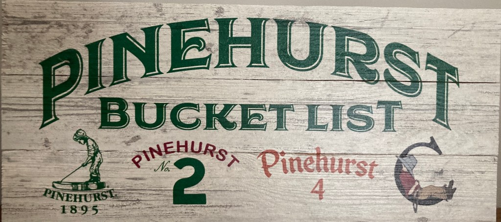 My first “bucket list” trip was to Pebble Beach Resort in 2021. This year’s bucket list is Pinehurst Resort in North Carolina to play Pinehurst #2, Pinehurst #4, Pinehurst #8 and Tobacco Road. You must stay at the Pinehurst Resort to play the “bucket list” courses #2 and #4. We stayed in the Golf Terrace 208 Condo on Pinehurst #5 – in the distance, we could see the main Pinehurst Clubhouse from the balcony; as well as watch golfers playing the 18th hole in front of the condo. It was a great vibe staying in the condos. I wrote a blog with “non-golf” tips for visiting Pinehurst if you are planning a trip.