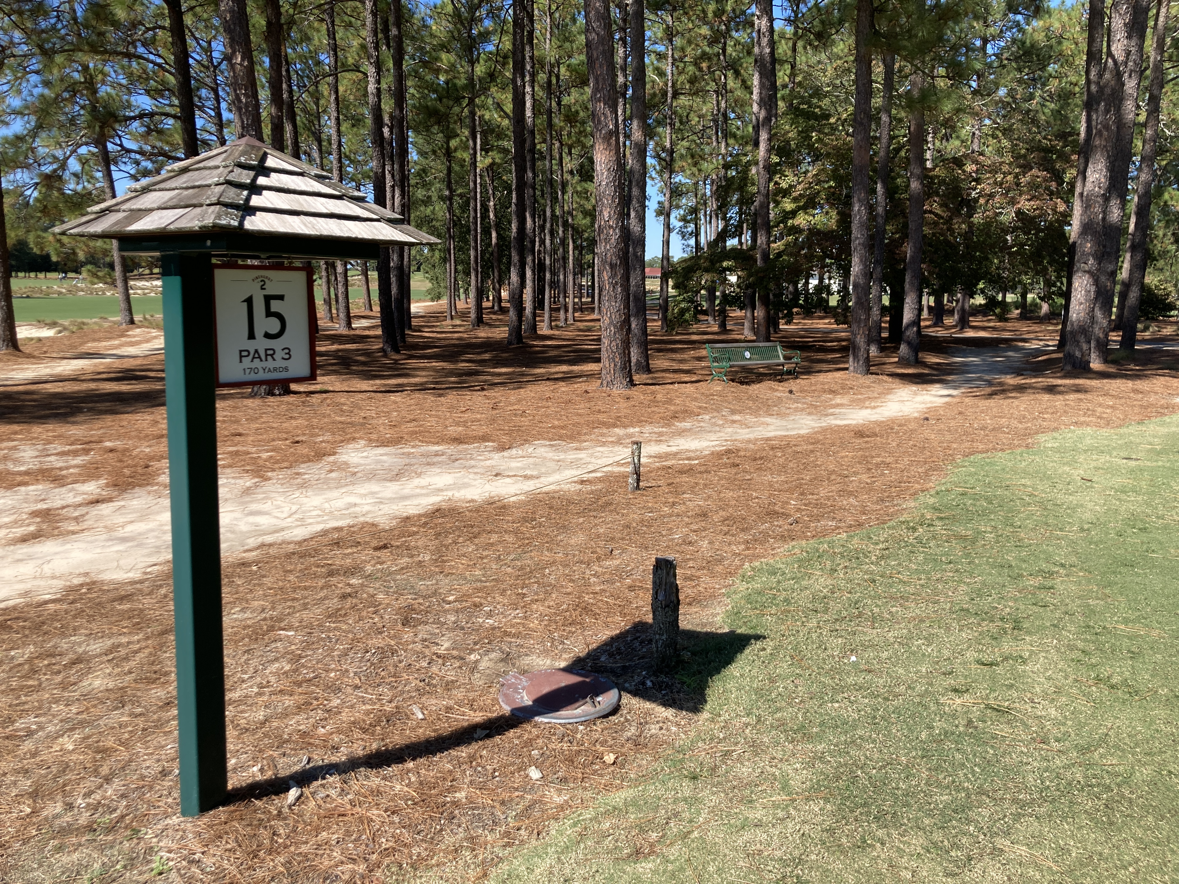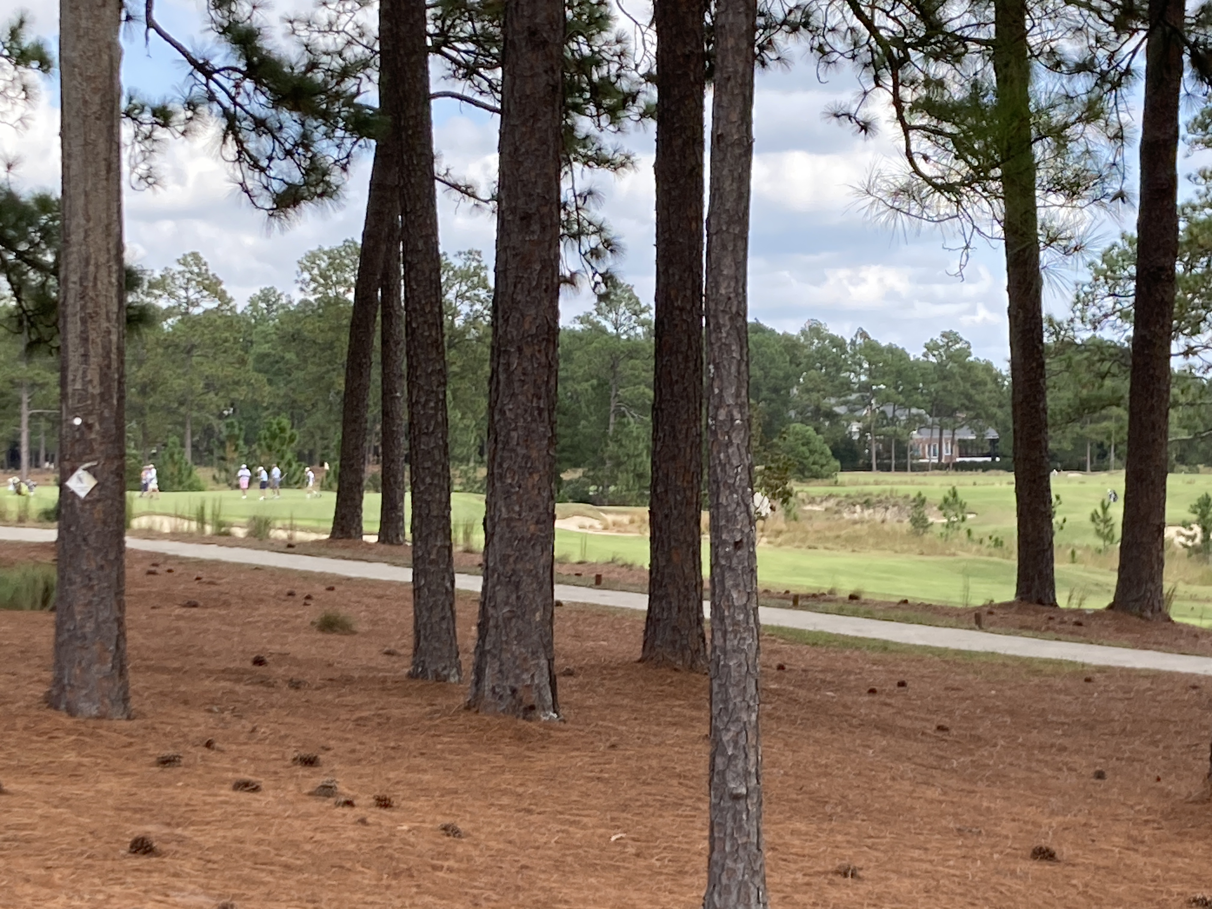 Pinehurst #2 – Everyone said “get ready to get beat up by Pinehurst #2” but that was not my experience. Yes, it was the most difficult course and for women I believe it’s not just the fast greens but also the length. The tee to green yardage for many holes meant I often could not get to the green in regulation or I was hitting a wood into the green which made “holding the fast greens difficult.” For example, Par 3, 17th hole played 167 yards (all carry per Chris our caddie) taking into consideration the elevated green protected on the right by a large bunker. That is basically a driver for most women. On most of the Par 4 holes, it was driver and three wood into the greens and, as I mentioned earlier, that makes holding a green very difficult. With respect to the waste areas, the sand was hard packed so once you realize you could hit a wood or hybrid in the area, it really wasn’t too penalizing unless your ball landed in a “love bush.” Even with the challenges Pinehurst #2 was enjoyable to play. One of the things that surprised me was how peaceful and relax I felt walking Pinehurst #2.
