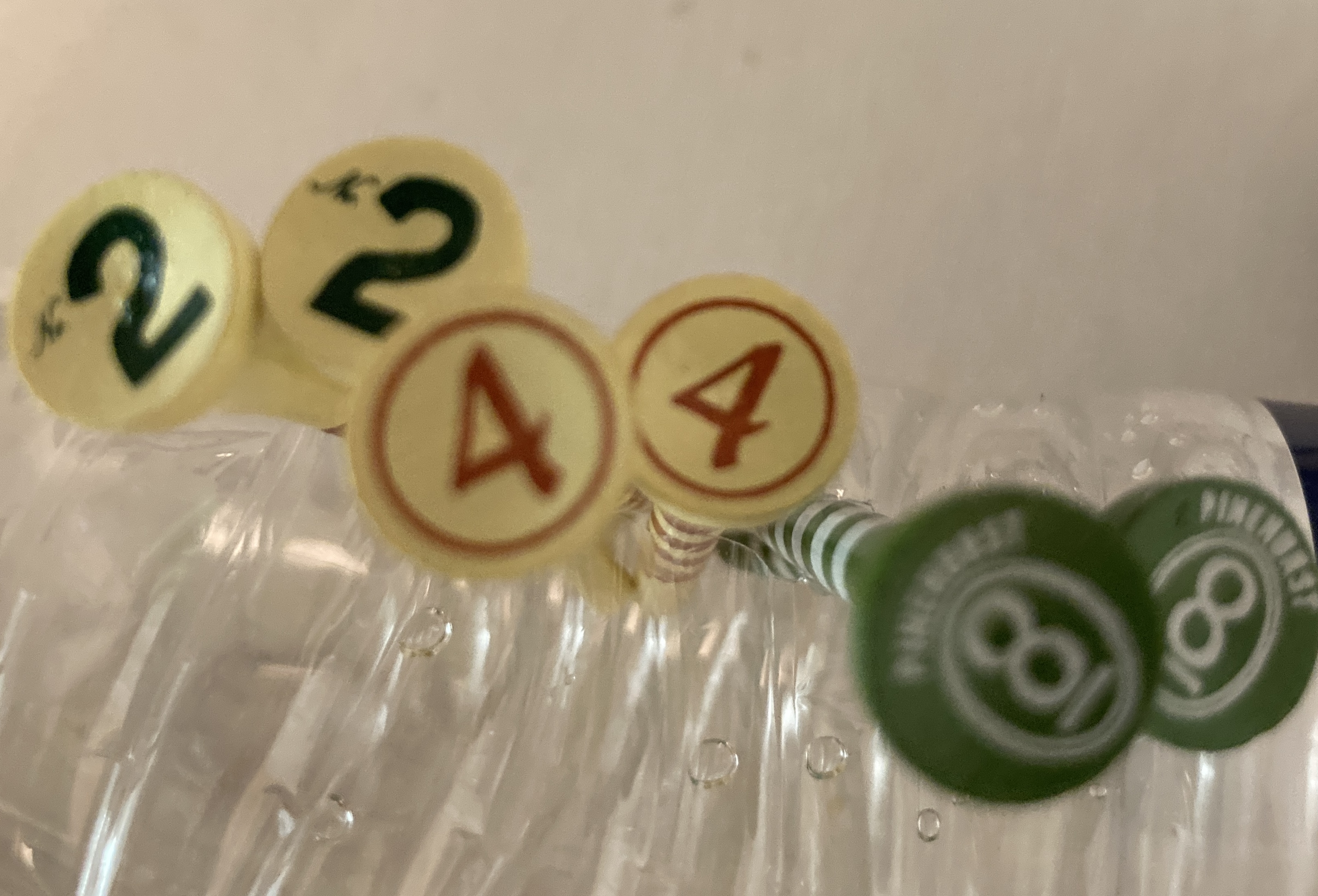 Also, each course at Pinehurst had tees (# on top of tee, different stripes on sides) and plastic ball markers for golfers to take at the 1st hole. Unfortunately at #2 there were no plastic ball markers.